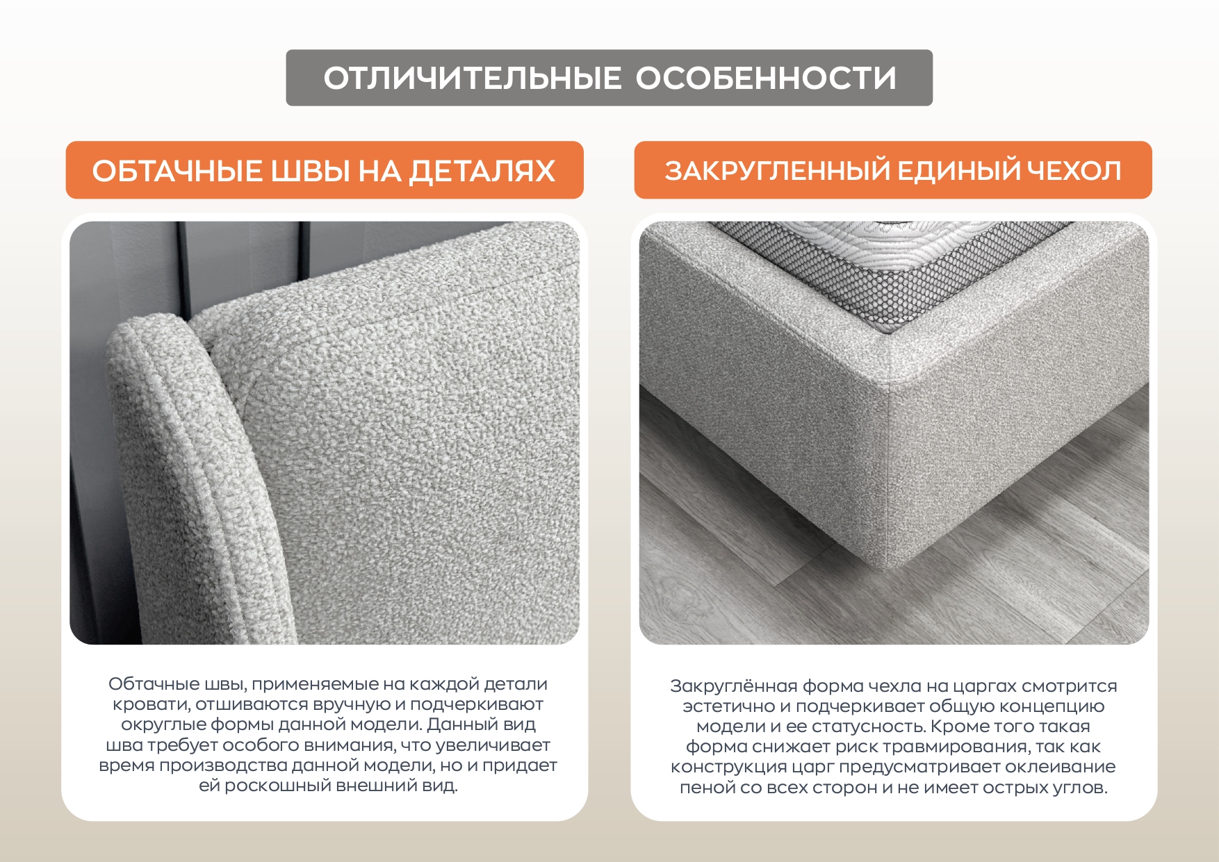Интерьерная кровать «Michele» - эксклюзивная модель в которой каждая строчка отшита вручную, что подчеркивает ее изысканный внешний вид и безупречную форму каждой детали. Ножки в комплекте: металлические черные