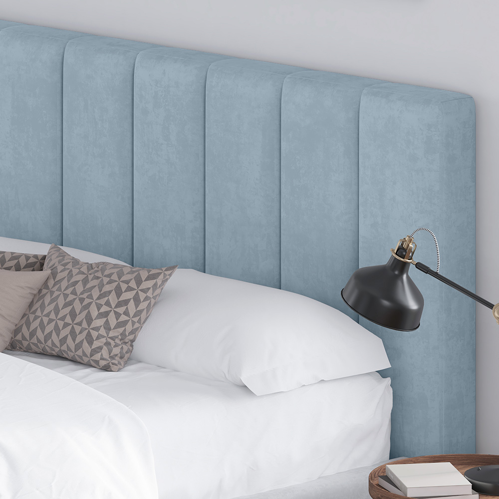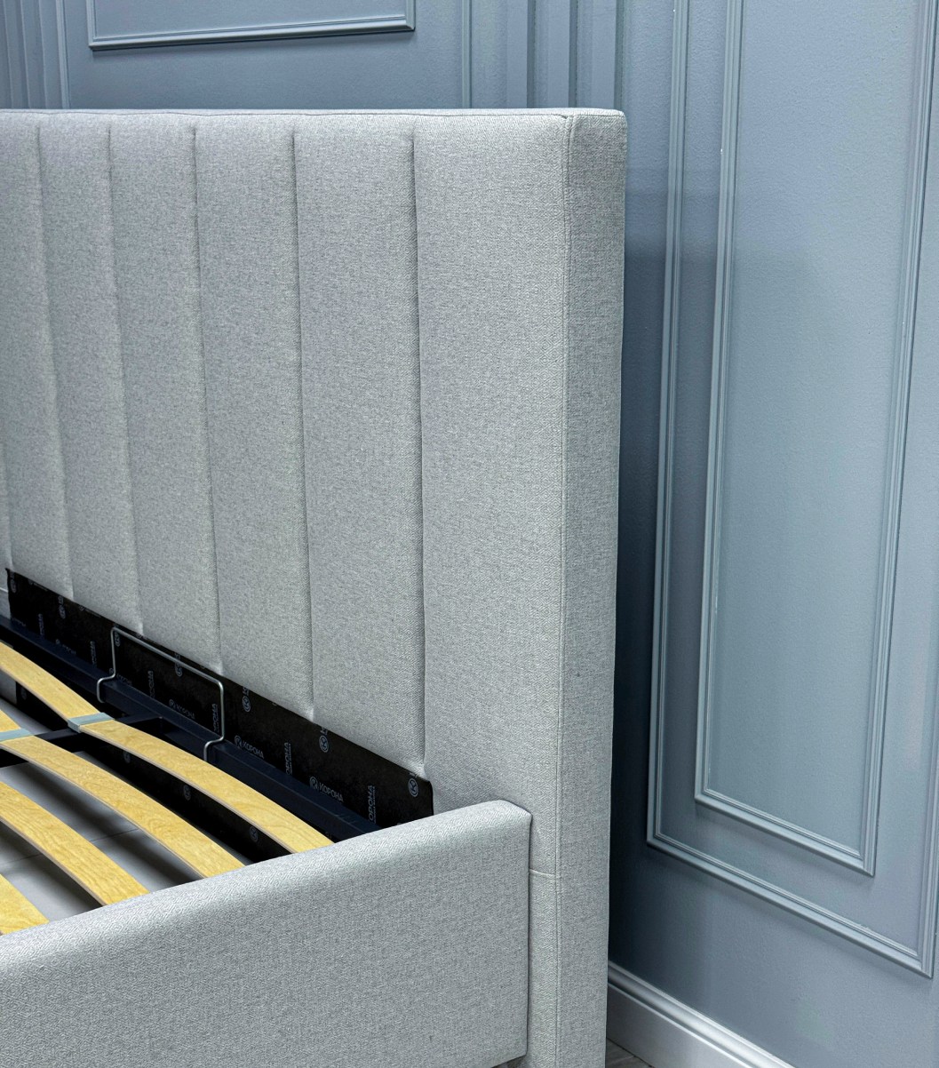 • Изголовье кровати выполнено вертикальными линиями. Данный дизайн актуален и отлично впишется в любой современный интерьер.